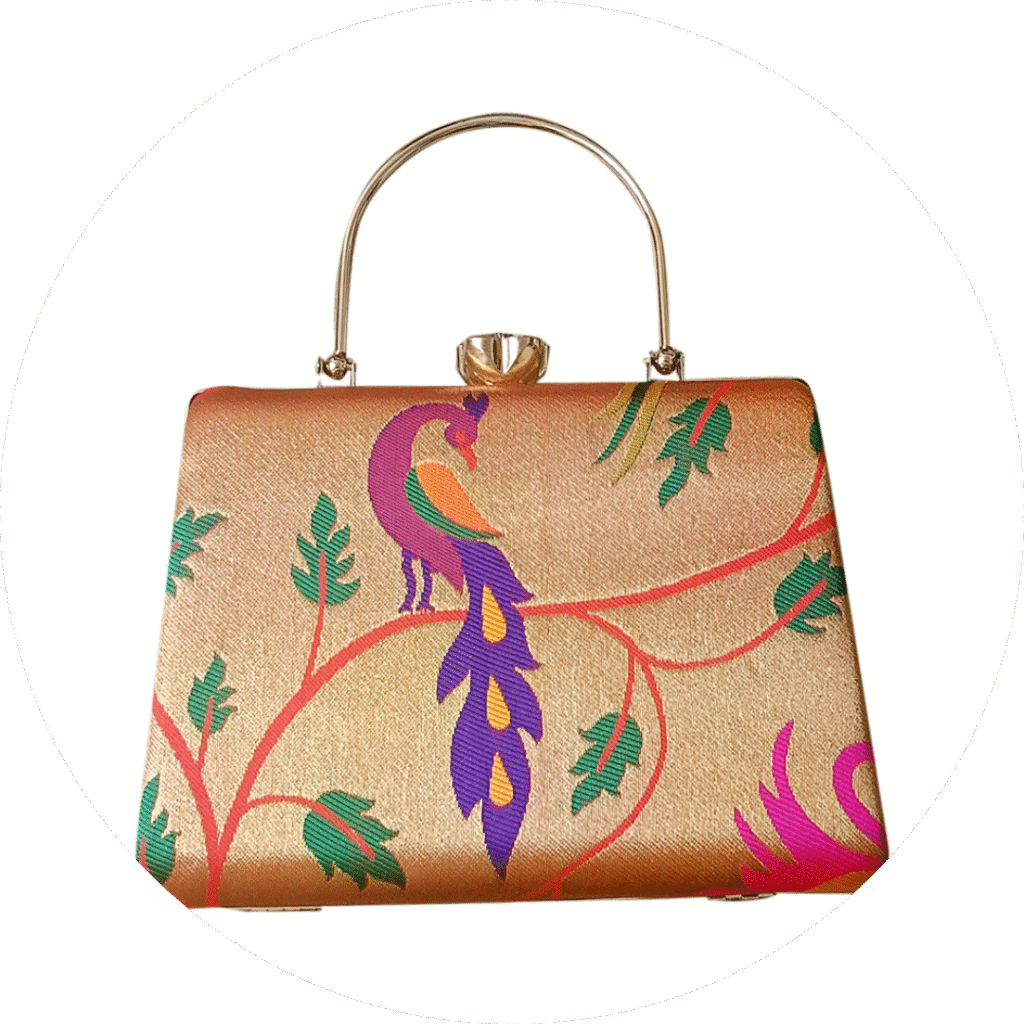 Elegant and timeless, our Potali bags are crafted from traditional Paithani semi-silk, celebrating the rich artistry of Maharashtra. Each bag is a unique masterpiece, adorned with intricate designs and patterns that reflect the beauty of this renowned craft. Perfect for adding a touch of heritage to your style.