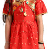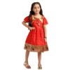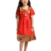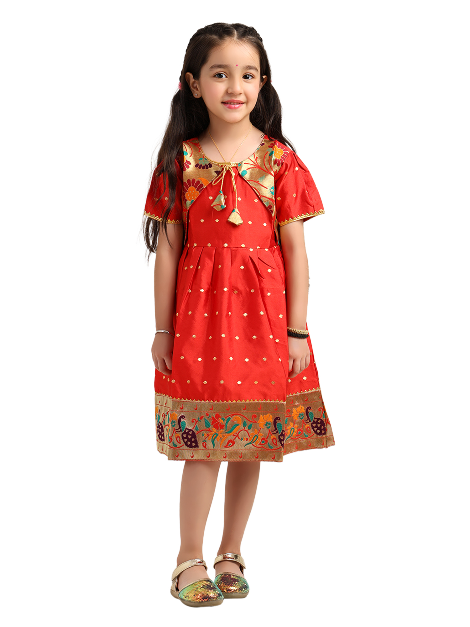 Paithani Baby Girl Frock – Red Silk with Multicolor Zari Border & Brocade Yoke – Indu Pattern