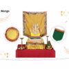 Each piece in the set highlights the traditional artistry of Paithani weaving. The intricate side motifs represent heritage craftsmanship and add a decorative charm to your festive arrangement. Because the designs blend seamlessly with the mango theme, the entire setup looks balanced, symmetrical, and visually appealing.