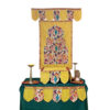 The Paithani temple decoration combo set mango theme brings a warm, lively, and culturally rich festive look to your Ganesh Chaturthi setup. This seven-piece set helps you create a coordinated mandap or pooja corner with minimal effort. The bright mango-inspired colour palette adds freshness and joy to your décor, making it perfect for auspicious celebrations.