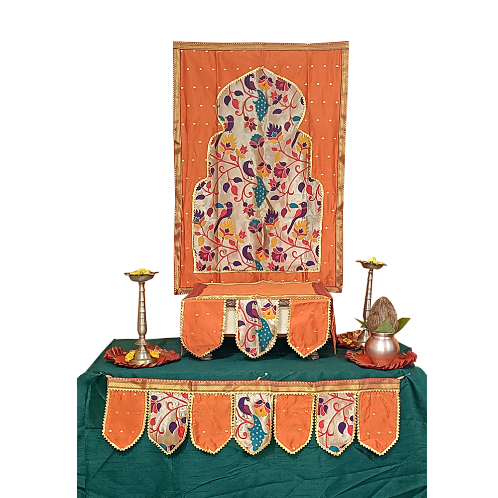 Orange theme Paithani temple décor combo