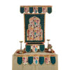 Made from premium silk fabric, the backdrop features a vibrant green base accentuated by shimmering gold-zari borders and intricate temple-pattern motifs inspired by Paithani tradition. The design evokes a sacred sanctuary feel and enhances your mandap or altar with rich colour and cultural depth.